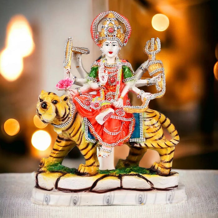 For homes with a clean, ivory-toned interior, a beautiful jerkin decorated durga maa statue makes for an elegant choice. These murtis are made from high-quality resin, ensuring both durability and beauty. Not only are they perfect for Navratri, but they also make a stunning addition to your home decor throughout the year.